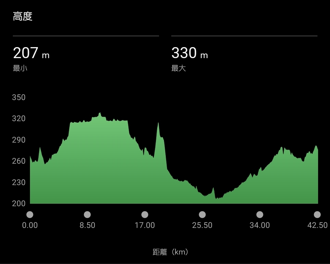 風と高低差を加味すると記録を狙うのは難しい状況でしたが、ゴールタイムは3時間42分と前回から6分更新。